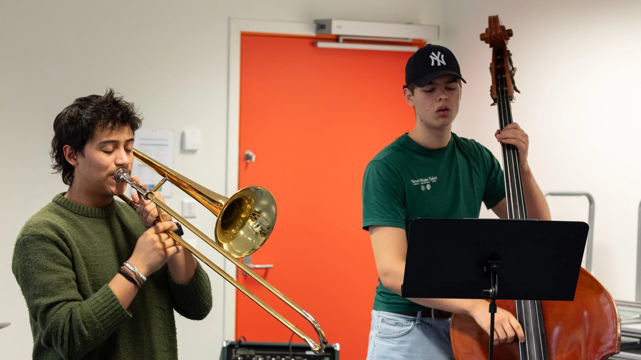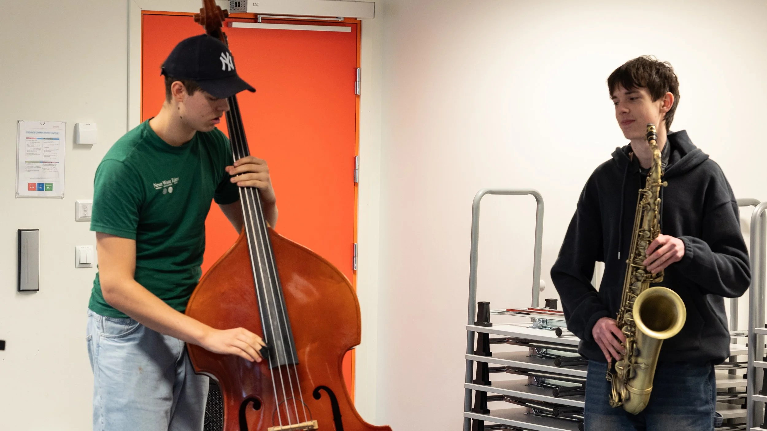 Det er hyggelig og livlig stemning i det jeg kommer inn til jazzelevene fra klasse 2M, som øver til lørdagens konsert i Storyville. Siden 2018 har Molde Videregående Skole tilbudt et helt spesielt studieprogram; Landslinje for jazz. Her kan elever fra hele landet søke seg inn, og i skoleåret 2025-2026 består linja av til sammen 14 elever fra flere av kommunene rundt byen vår, og fra to andre fylker i landet. Nå har elevene satt seg i en halvsirkel med bandoppsett i midten, hvor de fremfører sangene sine til Storyville-konserten i forskjellige sammensetninger. Etter hver fremføring gir elevene i halvsirkelen tilbakemeldinger. Det kan være «Hvorfor spiller dere på den måten?», «Dere bør variere dynamikken mer», og «Jeg synes dere spiller bra!». Bakerst i lokalet sitter lærer Sindre Klykken, som har undervist ved jazzlinja siden den ble opprettet. Han følger med på tilbakemeldingene som elevene gir til hverandre, og kommer til slutt med sine egne kommentarer. Det er i stor grad elevene som styrer hva som blir gjort, mens Sindre fungerer som en veileder.