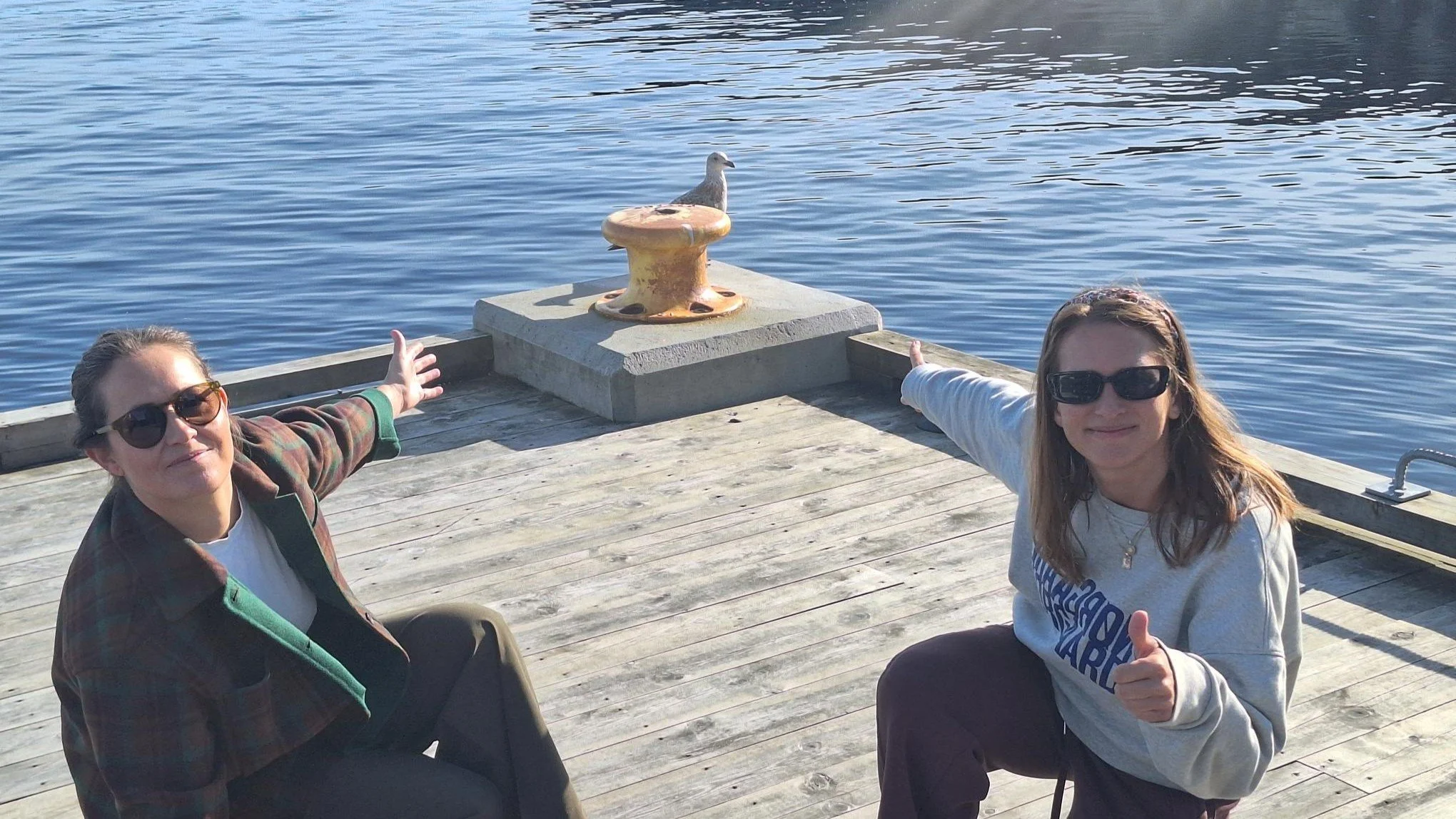 Det er Mari Watn, til venstre og Stine Melbø som er primus motorer for arrangementet i Kafe Kurt. Her tilsynelatende fotografert før måker skulle være ett av temaene. Foto: Petter Haakon Pettersson.