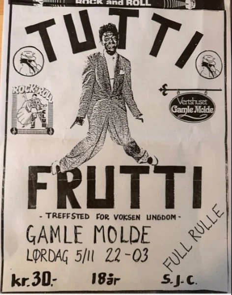 Konseptet med Tutti Frutti oppstod i 1986 da duoen begynte å spille «voksen dansemusikk» på Vertshuset Gamle Molde, i kvartalet hvor Alexandra Hotell stadig holder til. Her ble det spilt 50's & 60's, blues, soul, americana, swing, country & rock'n roll for voksne natteranglere. Og voksent på denne tiden var sånn rundt midten av 30-åra – den alderen gutta selv befant seg i. Køen for å komme inn snodde seg til tider langt nedover Nobelbakken og rundt Bistroen, det som i dag er den ikke operative pubben 1911. Senere ble Tutti Frutti lydteppe på utallige festligheter i praktisk talt alle byens og distriktets festlokaler.