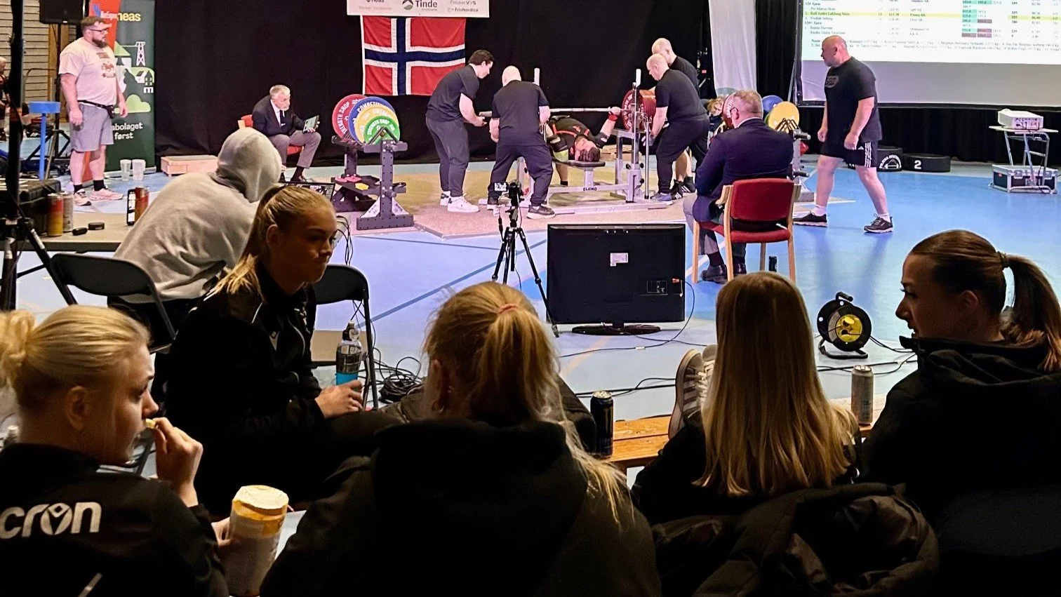 Etter godkjent innveiing og utdeling av økingslapper fikk utøverne tid til å spise(!) og varme opp. I treningsstudioet var stemningen uformell og inkluderende. Gamle kjente fra andre klubber ble møtt med håndtrykk, småprat og litt god, gammeldags skitsnakk – og kanskje noen små forsøk på å psyke ut konkurrentene.