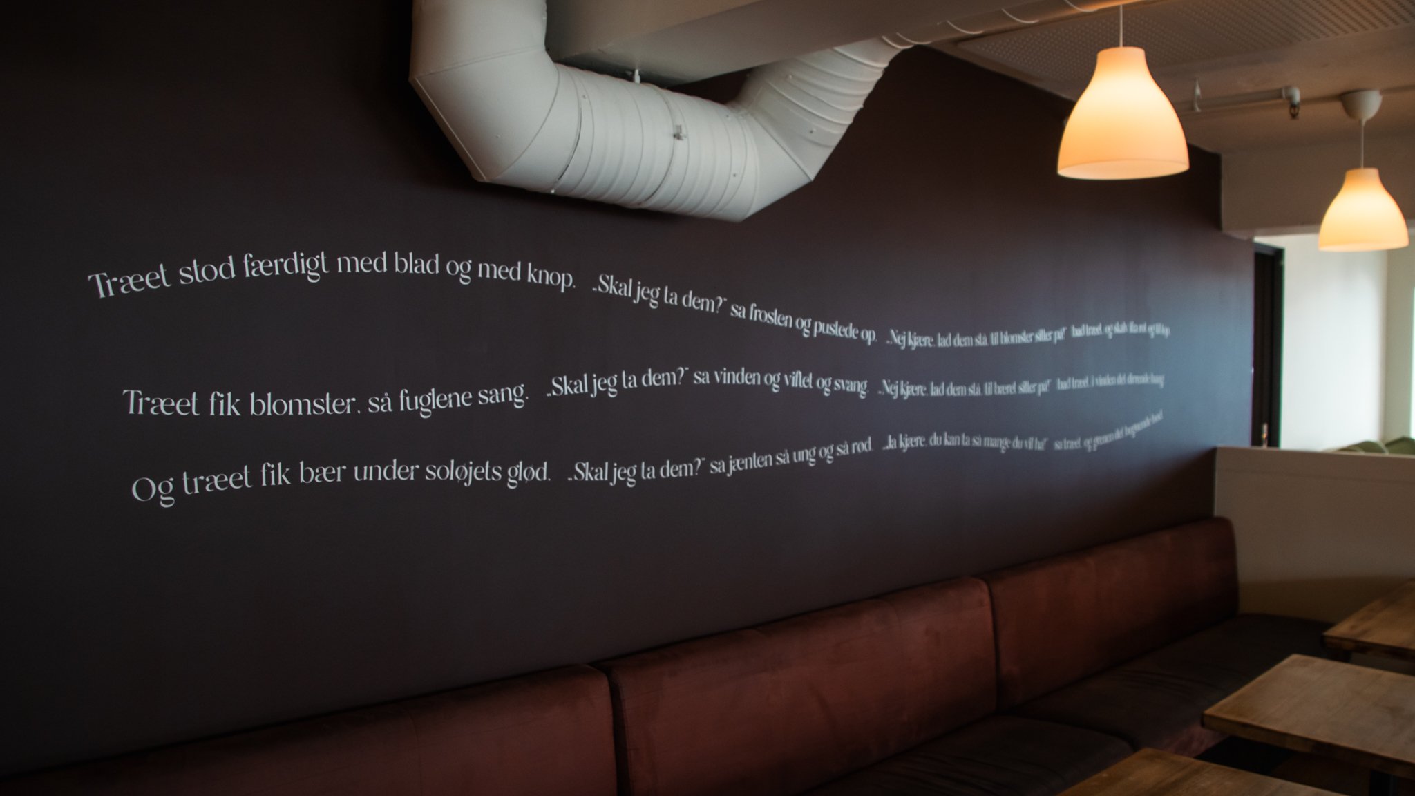 Diktet “Træet” av Bjørnstjerne Bjørnson gjengis i sin helhet på en av veggene i kafeen. Foto: Samuel Pettersson.
